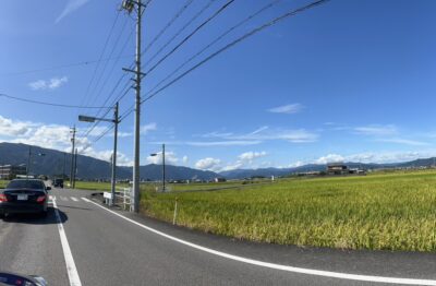 岐阜エリアのお客様先へ向かう途中、信号待ちでふと横を見ると、広がっていたのは一面の田園風景でした。