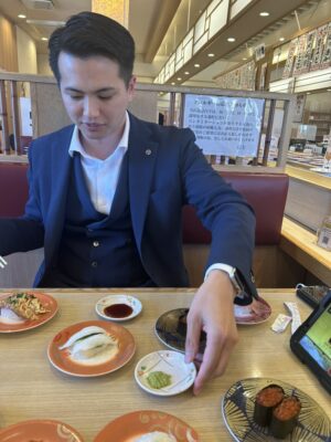 帰路では偶然藤川課長と合流し、地元のお寿司で小さな打ち上げ。