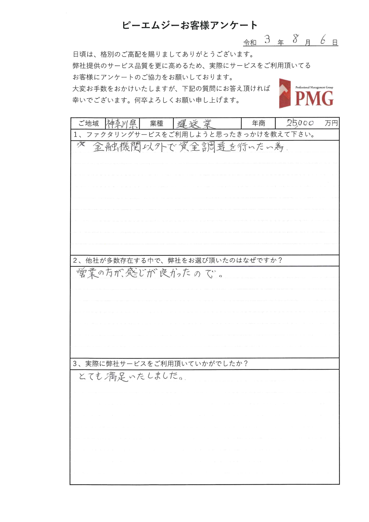 【神奈川県】運送業 ファクタリングを利用したお客様の声