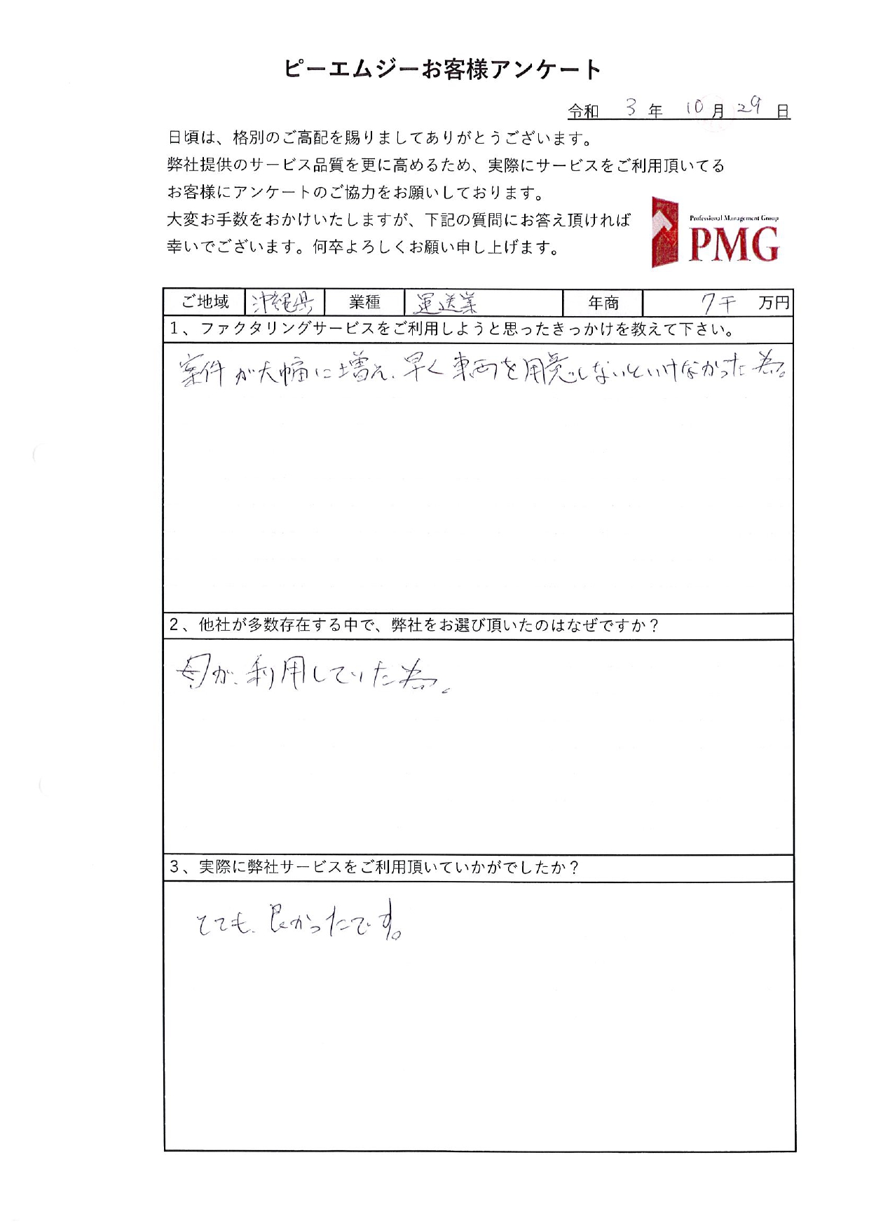 【静岡県】運送業 ファクタリングを利用したお客様の声