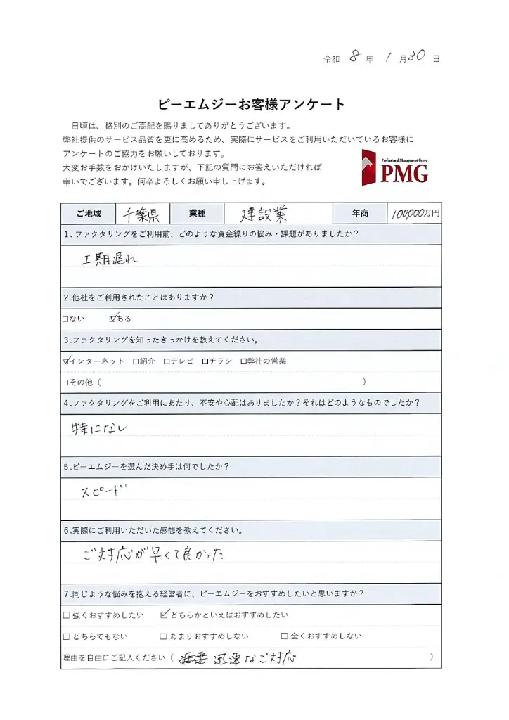 【千葉県】建設業 ファクタリングを利用したお客様の声