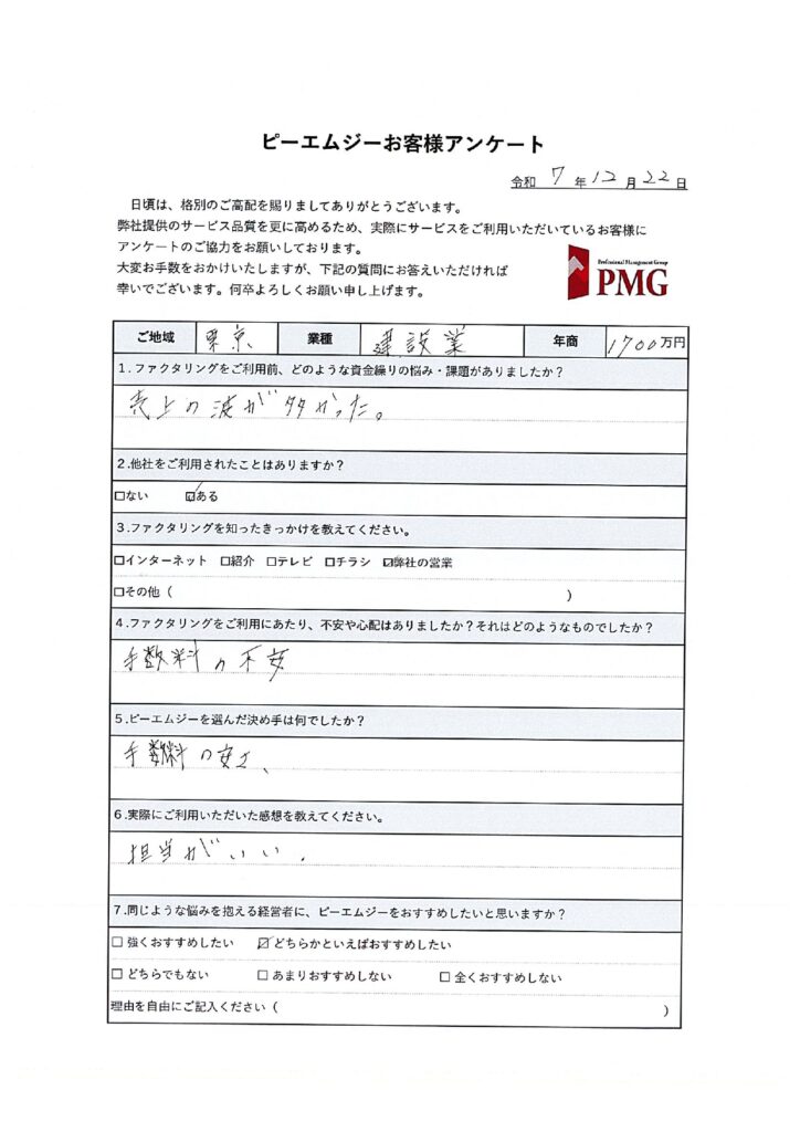 【東京都】建設業 ファクタリングを利用したお客様の声