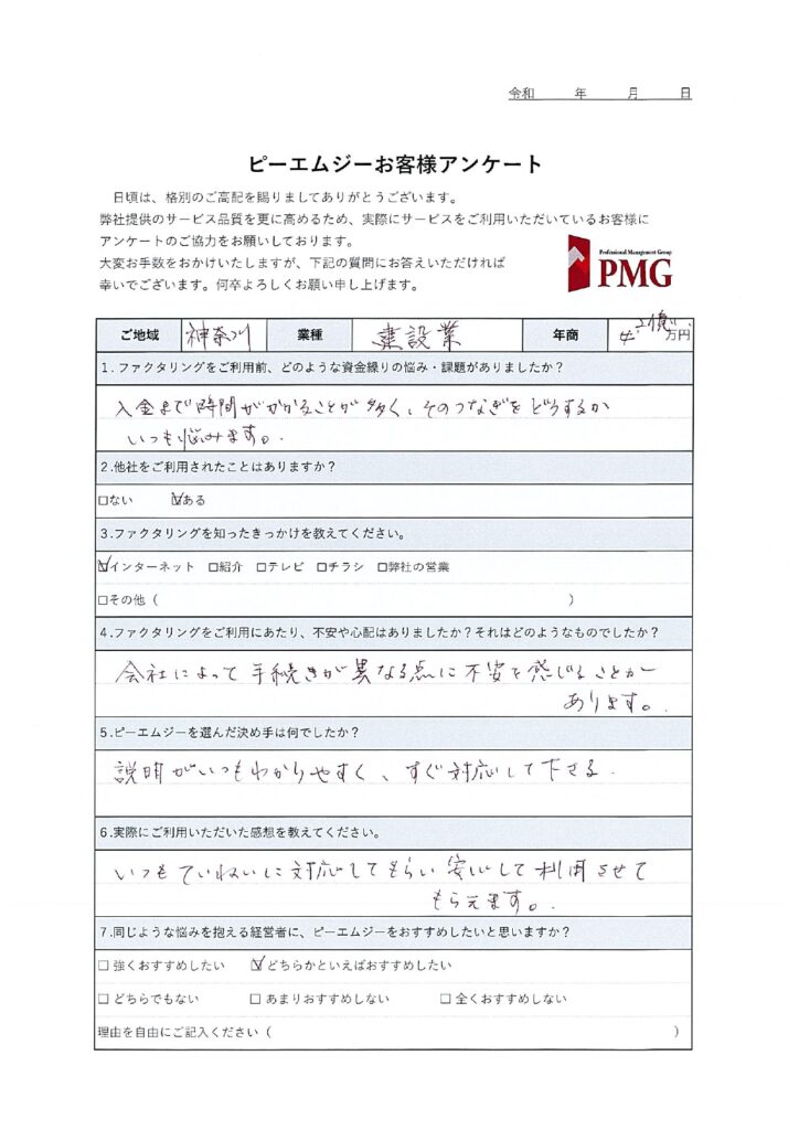 【神奈川県】建設業 ファクタリングを利用したお客様の声