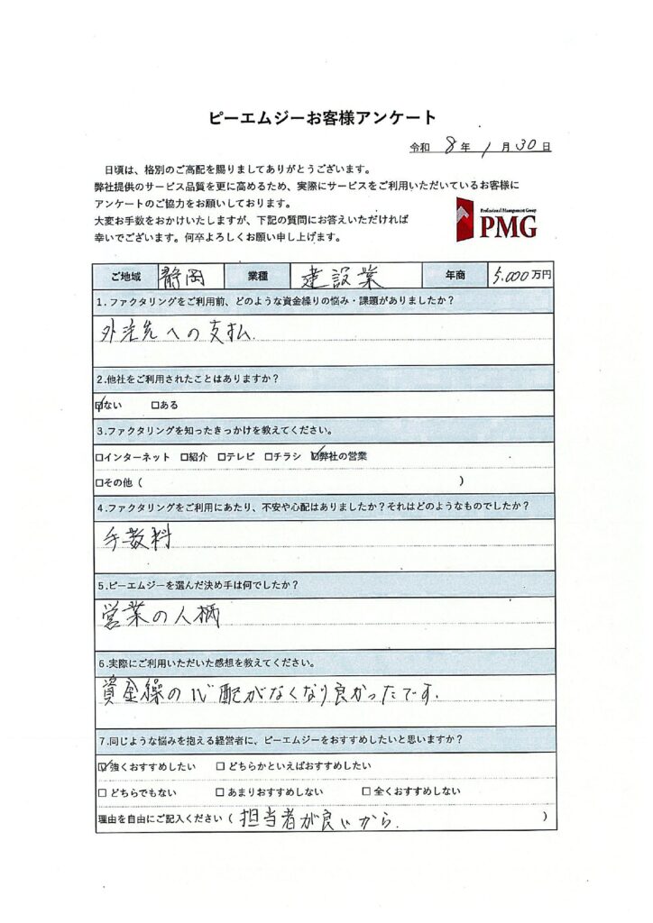 【静岡県】建設業 ファクタリングを利用したお客様の声